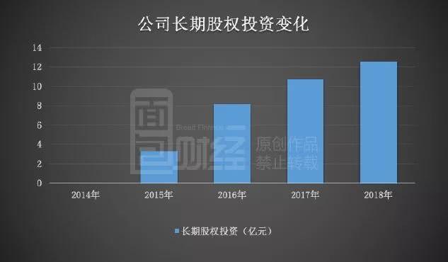财报显示,2018年底,公司长期股权投资余额约12.53亿元,相比于2015年增加了9.24亿元,长期股权投资在总资产中的占比由2015年的11.87%增加至2018年的29.61%。