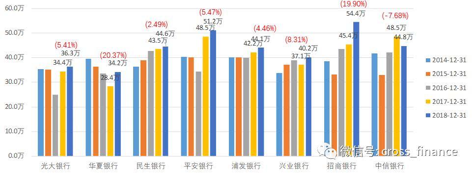 8家股份制商业银行的人均薪酬皆处于同业前列,且其中7家银行人均薪酬呈现增长态势。